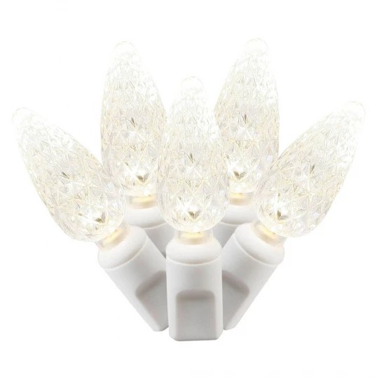 25 Foot C6 LED White Light Strand – 6 Inch Spacing: 50 Clear Lights