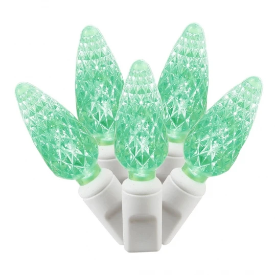 34 Foot C6 LED White Light Strand – 4 Inch Spacing: 100 Green Lights