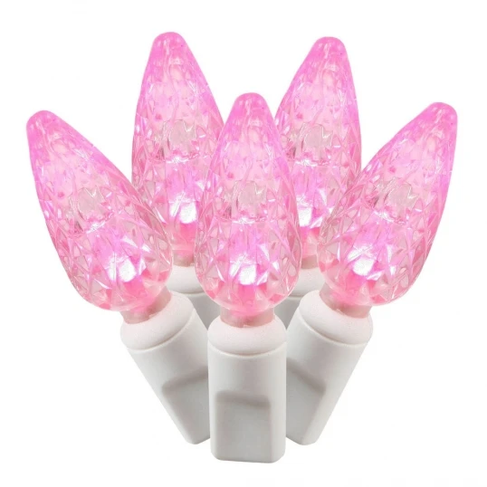 34 Foot C6 LED White Light Strand – 4 Inch Spacing: 100 Pink Lights