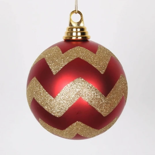 4.75 inch Red, Gold Matte Glitter Chevron Ball Ornament: (Box of 3)