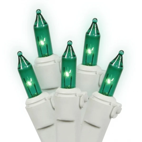 46 Foot 100 Mini-light Strand With 5.5 Inch Spacing On White Wire: Green All-Lit