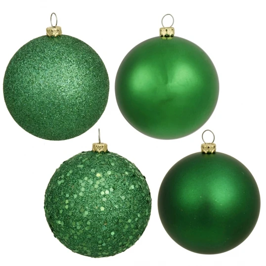 6 Inch Green 4-Finish Ball Ornament: Set Of 4