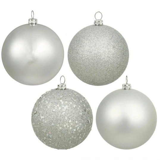 6 Inch Silver 4-Finish Ball Ornament: Set Of 4