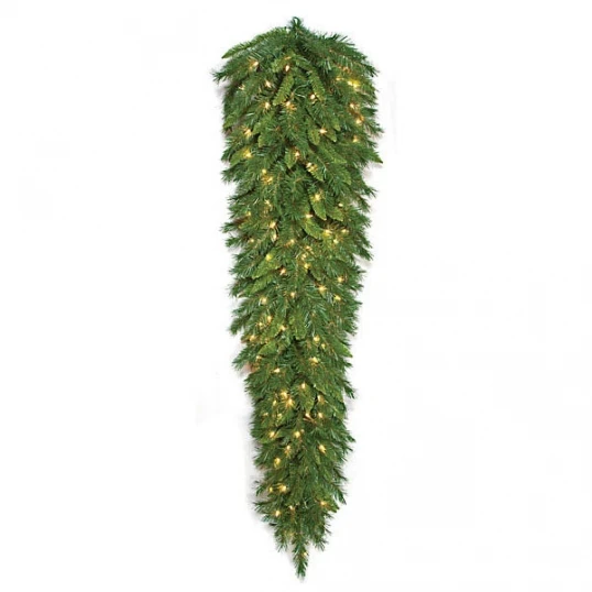 This long 72 inch Mixed Pine Teardrop will add an ideal finishing touch to your entryway or kitchen. The 100 clear pre-lit lights and long shape make this piece perfect for hanging near a doorway or entryway to welcome people into the room.