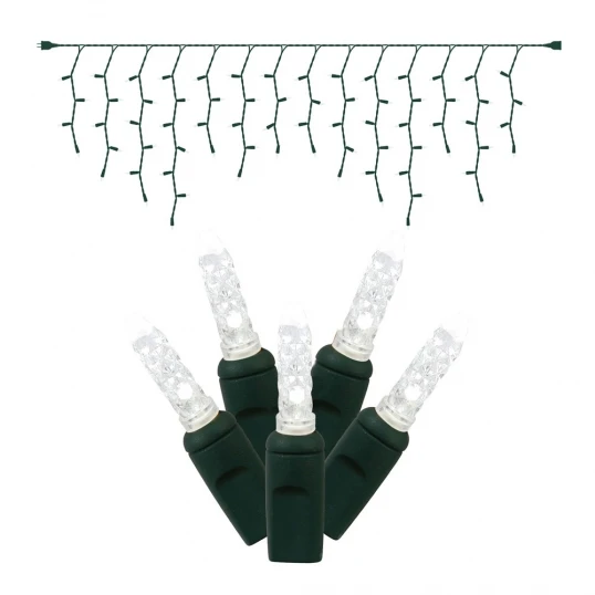 9 foot M5 LED Green Icicle Light Strand – 3.5 inch spacing: Pure White Lights